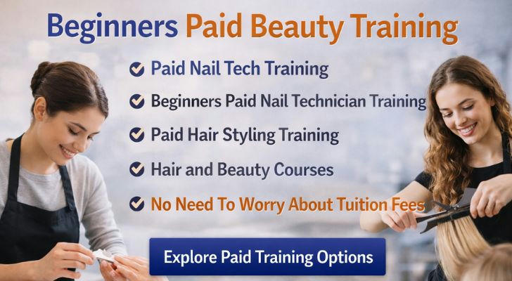 With options ranging from Beginners Paid Nail Technician Training to Paid Hair Styling Training, this category continues to attract high interest across the U.S. — especially among those searching for **Hair and Beauty Courses ** that lead directly to real work.
