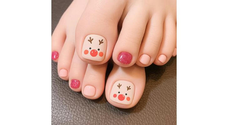 These shades create a clean winter aesthetic. They are also versatile enough to continue wearing after the Christmas season, making them a good option for those who want a longer-lasting pedicure.