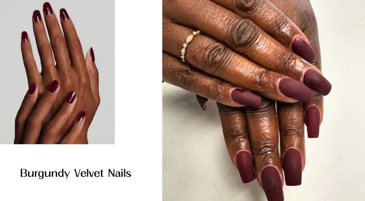 Velvet nails mimic a soft fabric-like shimmer when the light hits them.