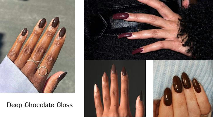 Rich brown tones remain a winter favorite. A high-gloss chocolate manicure looks elegant, warm, and universally flattering.