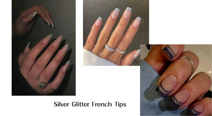 A winter twist on a classic French manicure — sparkling, festive, but still clean.